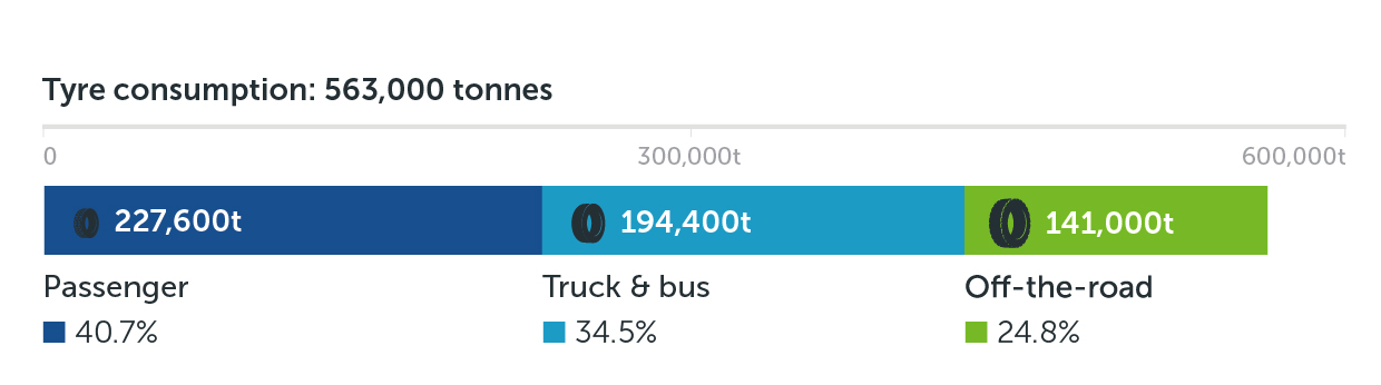 Australians purchase on average around 563,000 tonnes of new tyres annually.