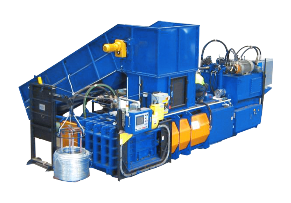 The TR90 Twin Ram Baler delivers 90T of force and fast cycle times, ideal for medium-volume sites processing rigid waste like PET, metals, and e-waste.