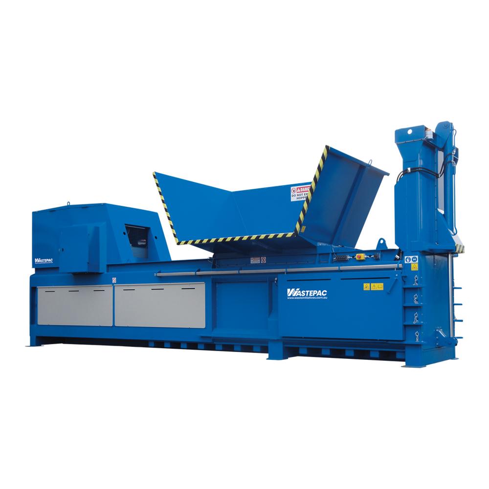 Optional extras such as a 56-second power-pack upgrade, bin tippers, wall chutes, and custom hoppers provide added flexibility. Ideal for industrial facilities and recycling operations requiring maximum power, durability, and throughput with easy, semi-automatic operation.