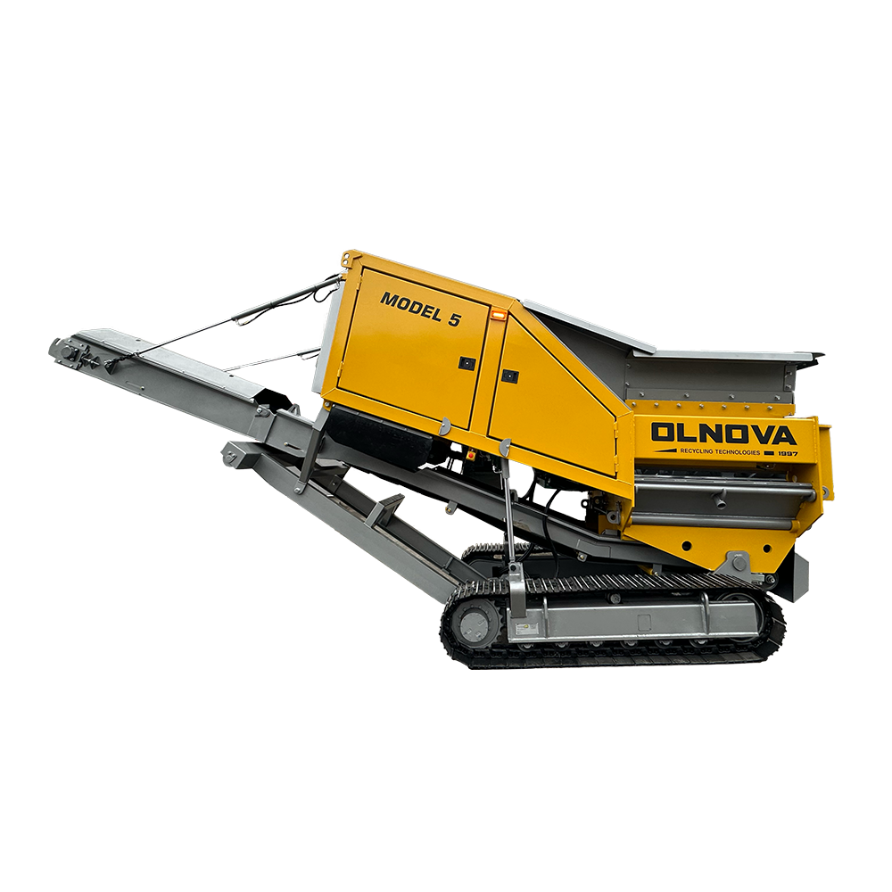 The Olnova Model 5 is a high-performance mobile shredder purpose-built for on-site processing of construction and demolition waste, asphalt, concrete, wood waste, plastic, and biomass. As part of the Vertech equipment range, it offers unmatched flexibility thanks to its track suspension and hook lift mechanism, making it ideal for challenging job sites and dynamic recycling operations.