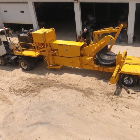 The Eagle Titan II cuts OTR and mining tyres up to 14ft in diameter and 44″ wide. Hydraulic control and trailer-mounted for maximum cutting power and mobility.
