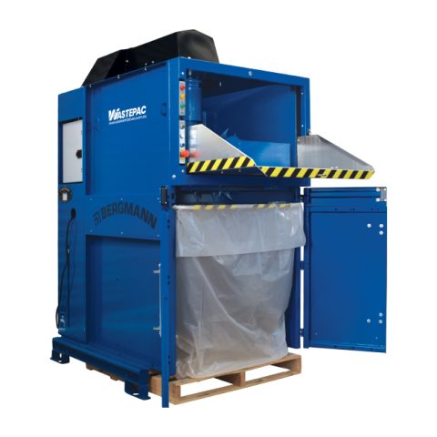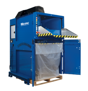 Automated baler that compacts dry waste into sealed plastic bags. Ideal for retail stores needing clean, low-labour waste handling.