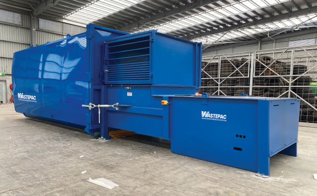 The Wastepac TP4500 is a large transfer compactor built for high-throughput sites and MRFs, with large feed apertures for bulky waste and fast operation.