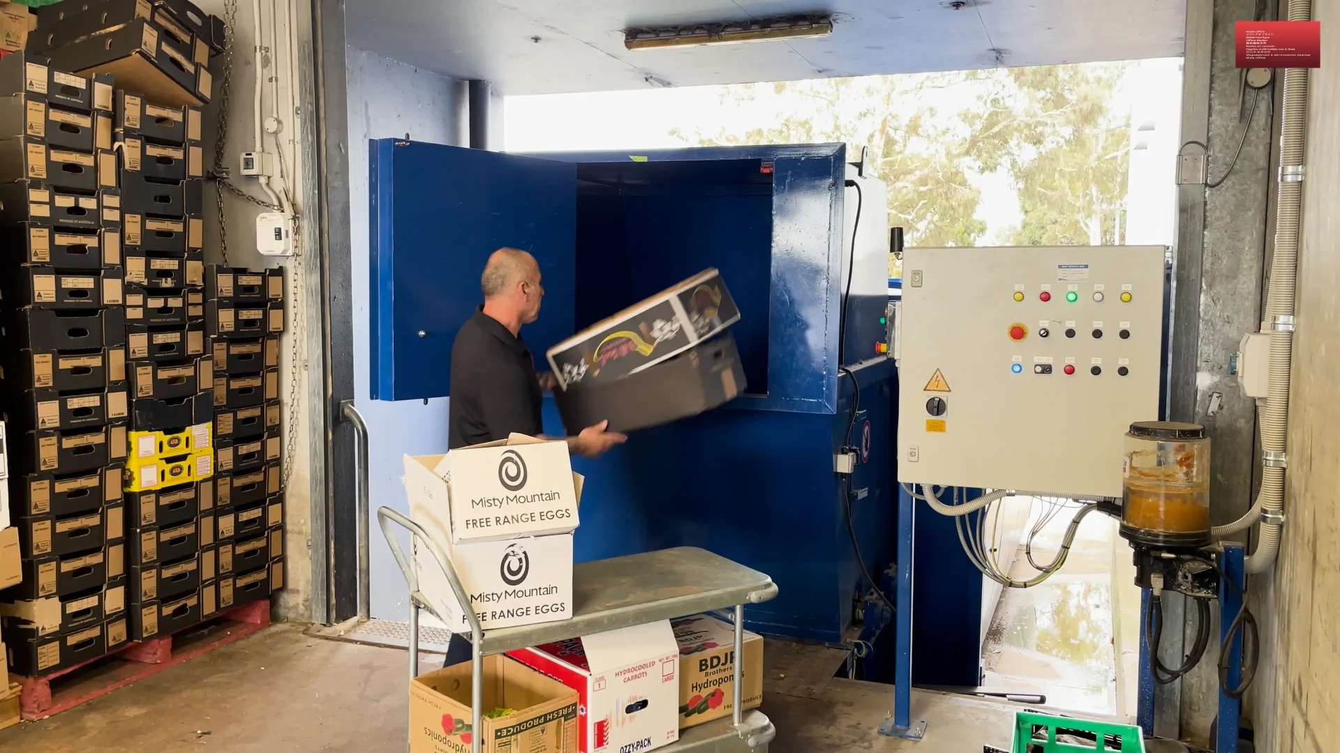 Roto compacting machines make it easier to compact cardboard boxes frequently used for store deliveries, with an opening at shoulder height.