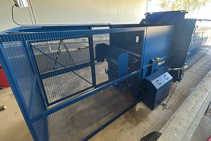 To optimise the setup, a bin lifter with a safety cage was incorporated, accommodating 1100-litre bins. The hopper was designed to handle Saizeriya’s large cardboard waste without bridging, ensuring smooth operation.