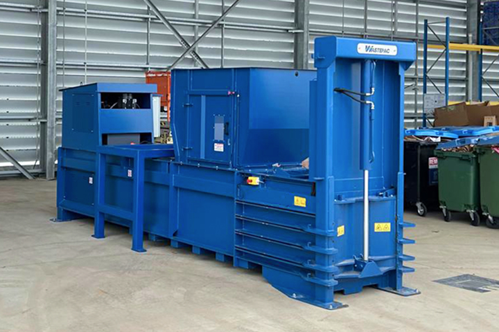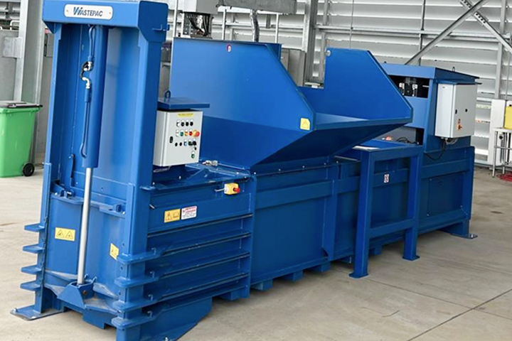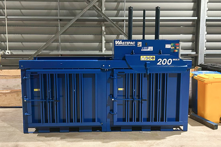 - Soft Plastics Baler – WastePac 200 Multi Chamber Vertical Baler with dual chambers for efficient separation and baling